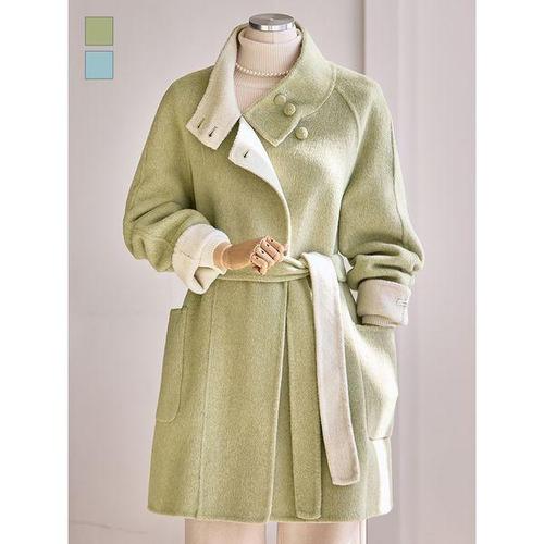 여자 노버튼 모직 울코트 하이넥 자켓