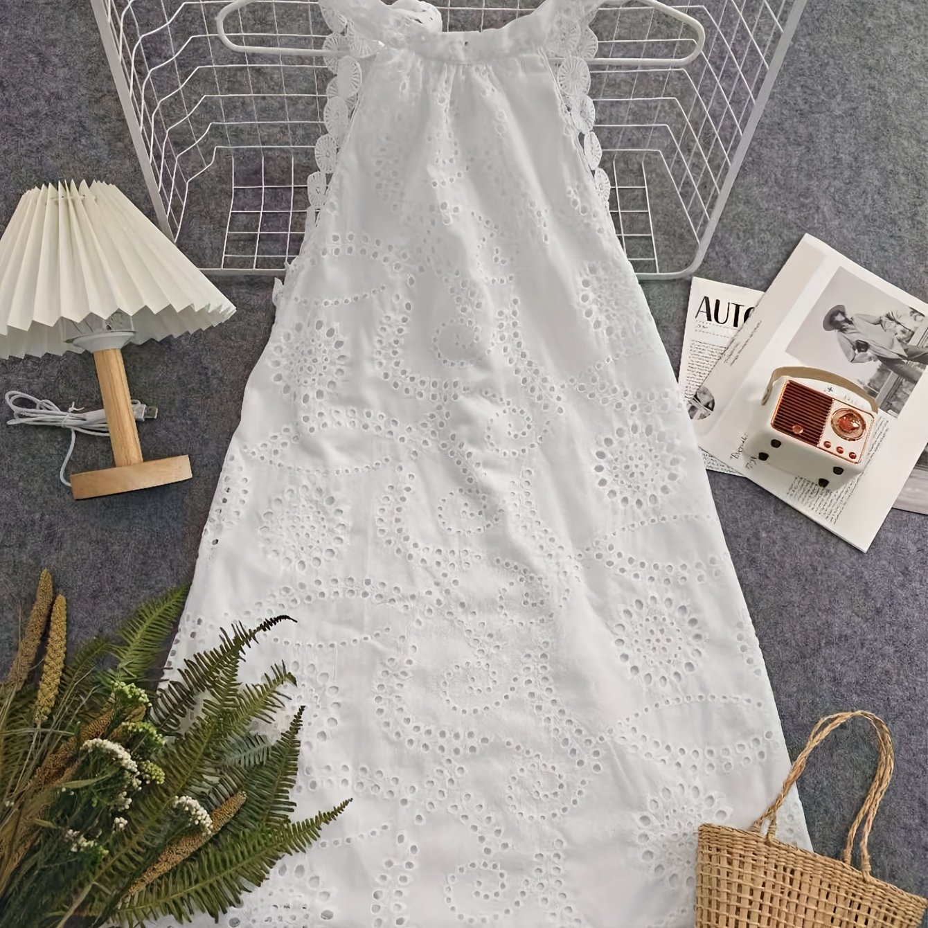 TEMU 여신 같은 휴가 스타일 | 화이트 레이스 자수 홀터 드레스, 우아하고 세련된, 산뜻한 여신 드레스, 고급스러운 휴가 느낌, 휴가 필수템, 여신의 매력을 가득 담은, 섬세하고 아름다운 드레스
