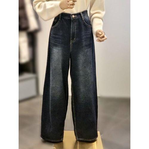 여성 스타일 완성 와이드 청바지 데님 실크 팬츠 겨울 기모 하이웨스트 탈부착 일자 면바지 힛템
