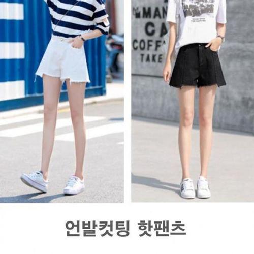 숏팬츠 블랙 화이트 하이웨스트핫팬츠 미니핫팬츠 언 WD3C162