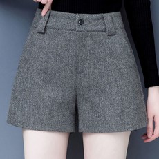 여성용 가을 겨울 빅사이즈 슬림핏 H라인 하이웨스트 모직 반바지