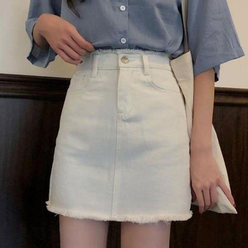 하이웨스트 A라인 데님 미니 스커트 여성 꾸안꾸 포멀룩 WFK61QV