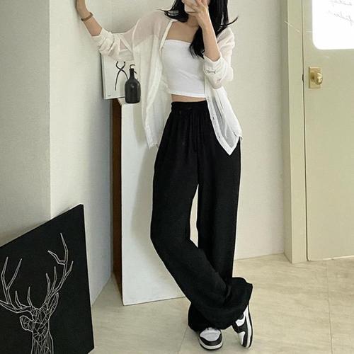 바지 회색 니트 캐주얼 맨투맨 트레이닝 하이웨스트 여자바지 워즈 와이드 스트레이트 슬림핏 슬랙스 면~