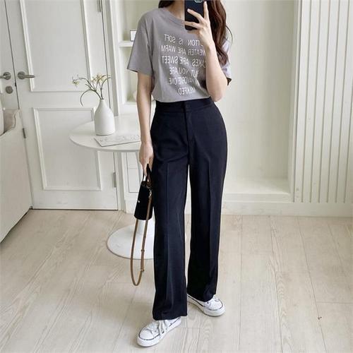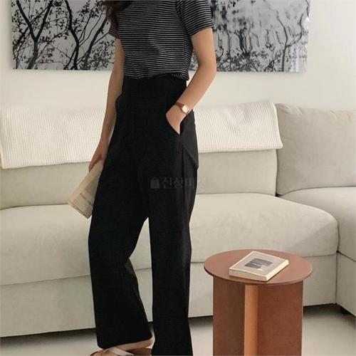 핫세일 여성용 한국 스타일 하이웨이스트 정장 바지 여성용 편안한 일상용 스트레이트 레그 바지 여성 클래식 패션 솔리드 바지