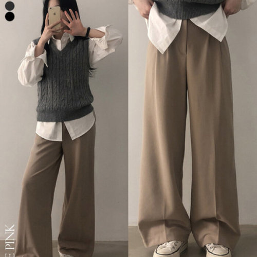 [다잇템]여자 투버튼 하이웨이스트 MAXI 넓은 슬랙스