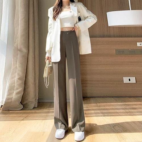 [다잇템][다잇템] 여성용 하이웨이스트 넓은 랩 베이직 정장바지 스판핏_23092147_588872