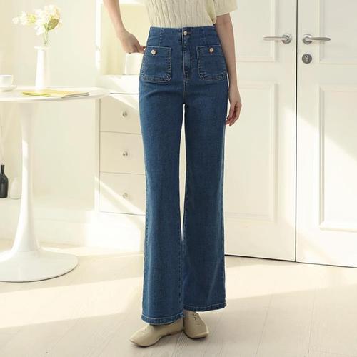 [다잇템]여성 핀턱 세미 넓은 하이웨이스트 나팔 청바지 (11039287A)