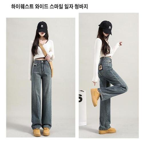 [다잇템]여성 넓은 스마일 하이웨이스트 H라인 청바지 (10771392A)