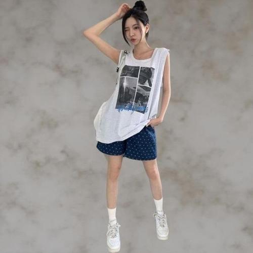 [신상오픈런]여성용 하이웨스트 도트 패턴 코튼 청반바지
