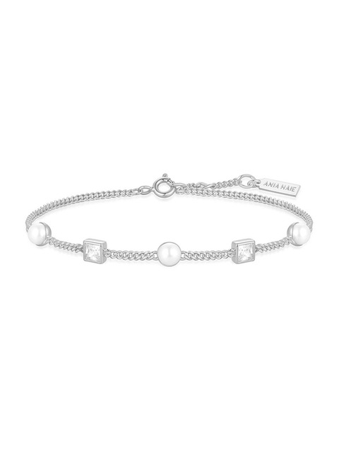 [아니아 하이에] 실버 큐브 앤드 진주 베젤 925 실버 팔찌 B069-02H