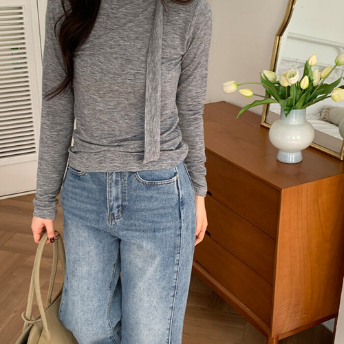 [올리브데올리브]하이넥 타이 스트랩 티셔츠(OW5WEA45-DG-EL)