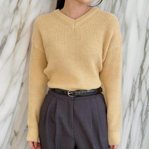 [미라클세븐][M7] 여자 V넥 FW 롱슬리브 스웨터 하찌 티셔츠