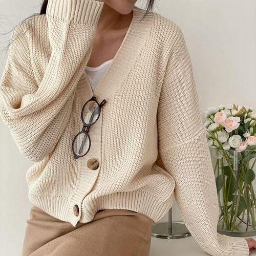 [옷자락] 여자 하찌니트 브이넥 오버핏 간절기 데일리룩 가디건
