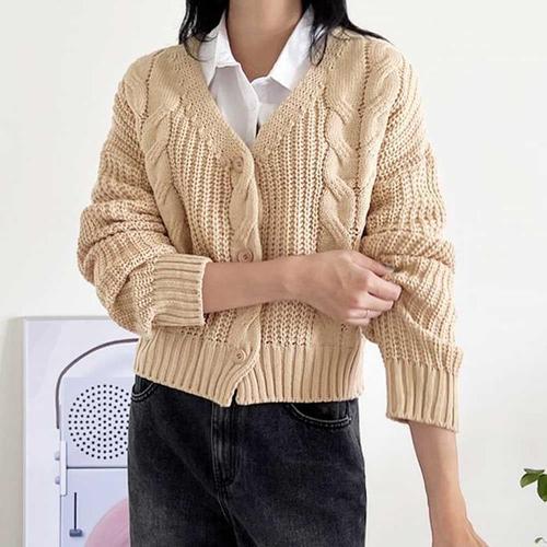 네쥬 여성 봄 가을 크롭 브이넥 꽈배기 데일리 하찌 긴팔 가디건
