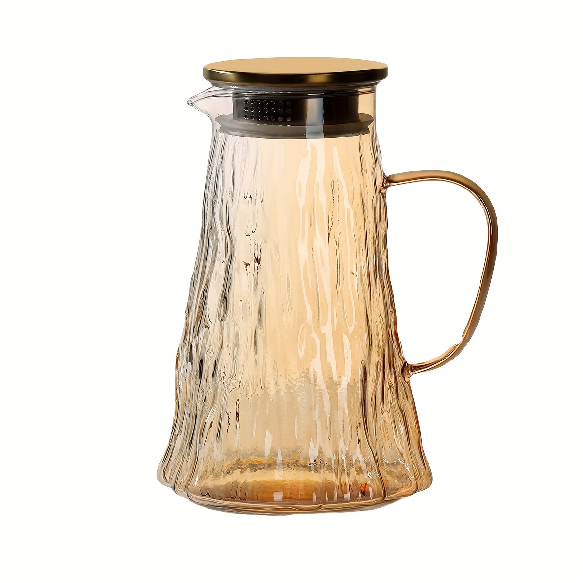 TEMU 빗방울 패턴 디자인의 고흑 유리 물병, 대용량 유리 냉수 주그, 재사용 가능하고 세척이 용이함, 전자레인지/냉장고 사용 가능, 주스, 콜드 브루 커피/차, 음료에 적합, 손잡이 A가 있는 새로운 빗방울 패턴 디자인