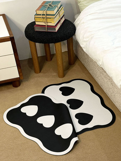 TEMU 【일상적인 편안함】 모조 캐시미어 매트 | 검정 & 흰색 하트 패턴 | 플러시, 미끄럼 방지 폴리에스터 | 세탁기 사용 가능 | 침실 & 거실 장식에 이상적 | 아늑한 실내 사용, 미끄럼 방지 매트 | 장식용 바닥 매트 | 폴리에스터 매트, 거실용 러그