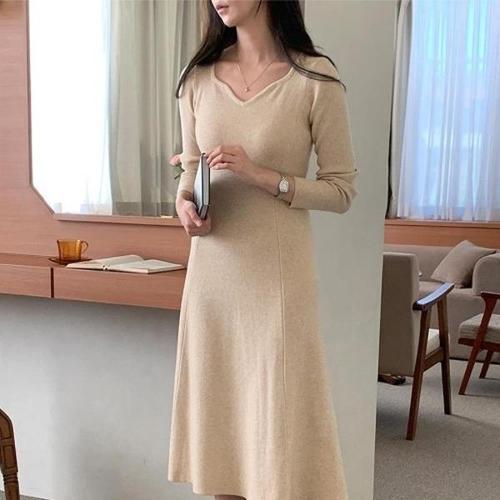 [옷자락]여자 하트 여성스러운 V넥 FW 후레아 스웨터 롱원피스
