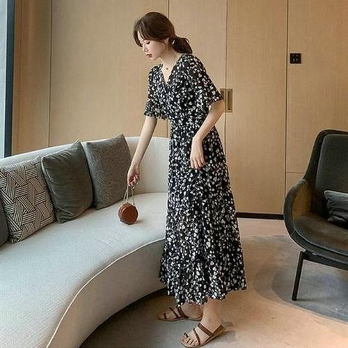 [다잇템][다잇템] 여자 가슴 반소매 검정 하트 잔주름 베이직 미니멀리즘 롱원피스_18267164_588872