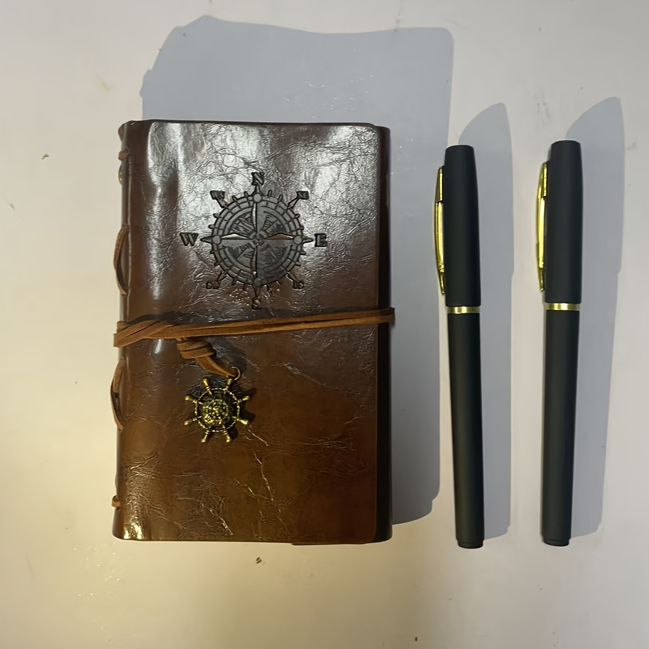 TEMU 3개 세트 학술 저널, 매트 빈티지 가죽 노트북 + 블랙-골드 젤펜 2개 - 빈티지 해적 테마 나비컴퍼스 디자인, 하드커버 메탈 클래스프 및 스파이럴 바인딩, 내구성 있는 커버의 기발한 다이어리
