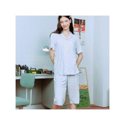 [솔브](정상) 보들보들 니트 소재 하트 나염 반팔 여성 파자마 세트 SEV249WS_W