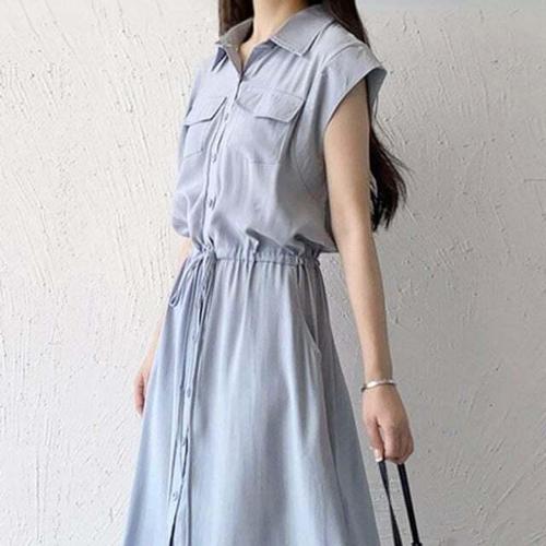 [하프클럽/]여성 퀼팅 루즈핏 민소매 레이어드 롱 드레스