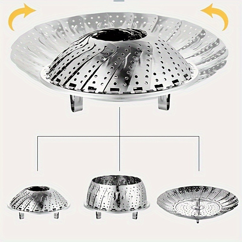 TEMU 고강도 스테인리스 접이식 찜기 - 4다리 설계, 미끄럼 방지 베이스 & 상단 랙, 공간 절약형 만두/수프/채소 찜기, 인덕션 호환 (410 등급)