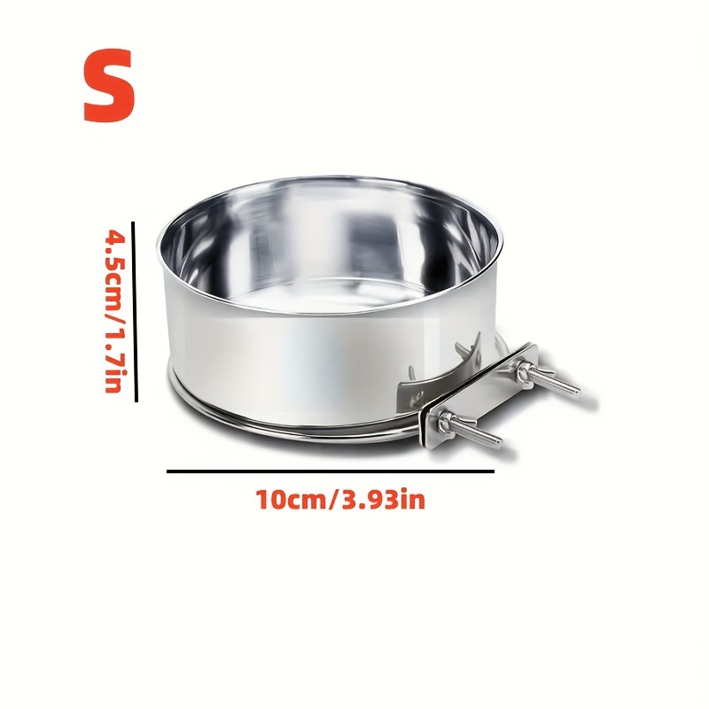 TEMU 1pc 개 사료 그릇 물 그릇 케이지용, 클램프 홀더가있는 스테인레스 스틸 논스필 행거 개 그릇, 목 보호용 애완 동물 크레이트 피더 베이신