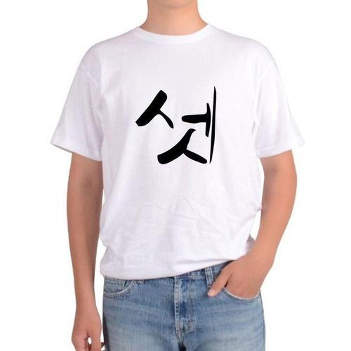 [에이치플러스몰]반팔 라운드티 숫자한글 셋 THREE 숫자3
