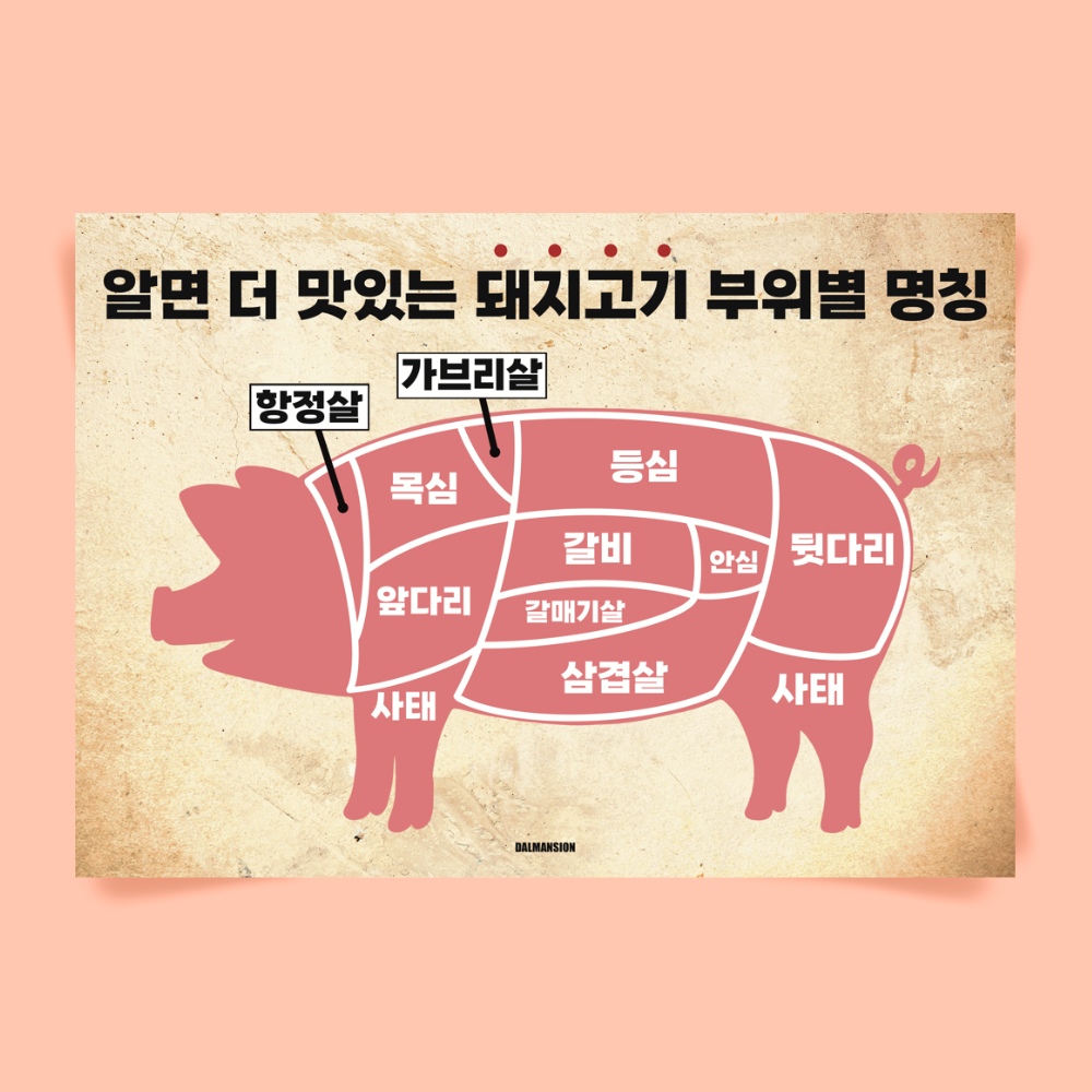 P81 돼지고기 부위 명칭 식당 문구 포스터 인테리어 삼겹살 냉삼 냉동삼겹살 한돈 한식