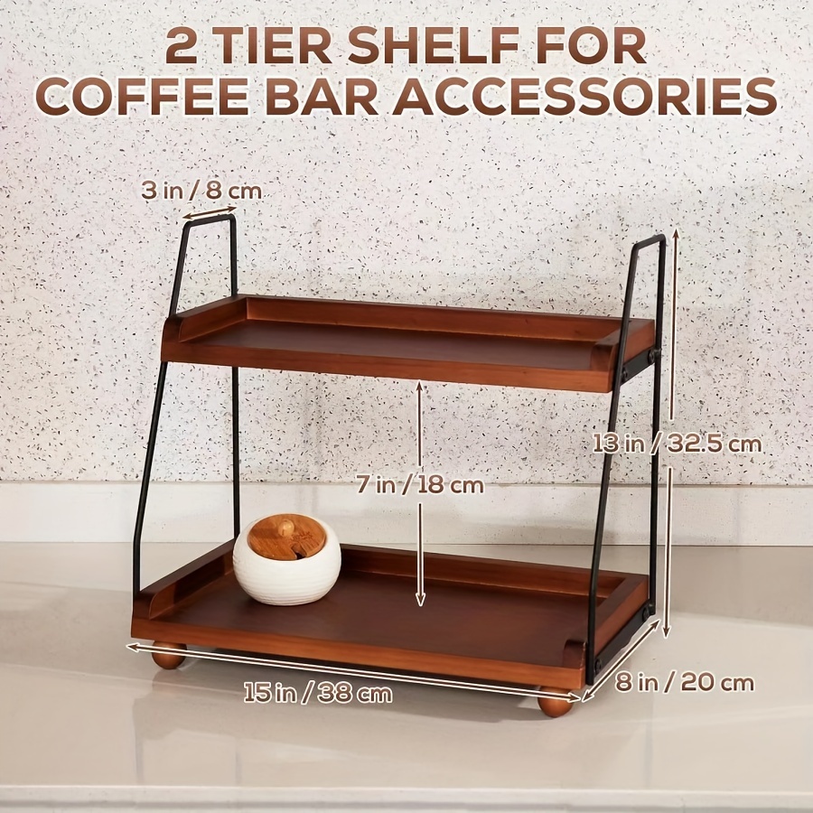 TEMU 1개 나무 2단 커피 바 액세서리 및 정리대, 금속 프레임 카운터탑 정리대, 다용도 욕실 화장대 트레이, 주방 커피 보관대, 팜하우스 스타일 홈 데코 디스플레이 선반, 랙