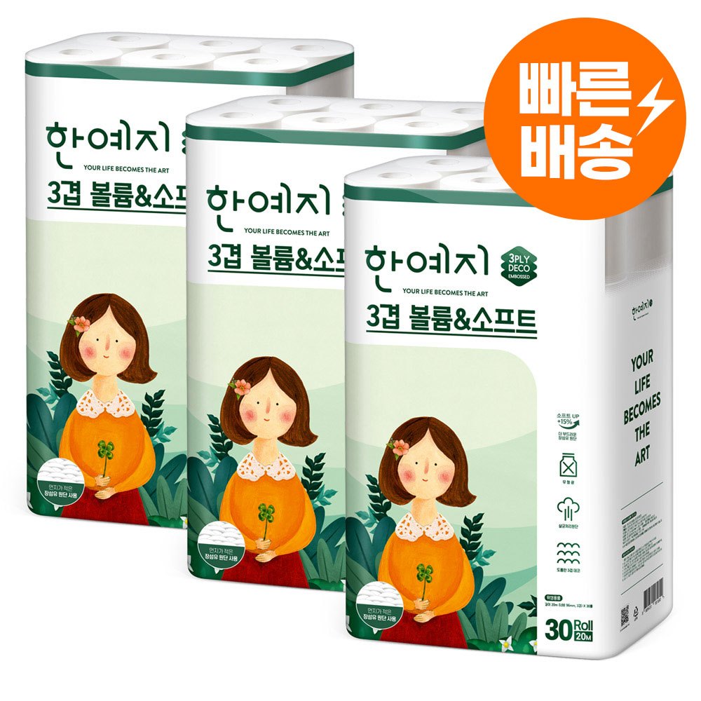 TEMU 한예지 3겹 볼륨앤소프트 20M 30롤 3팩