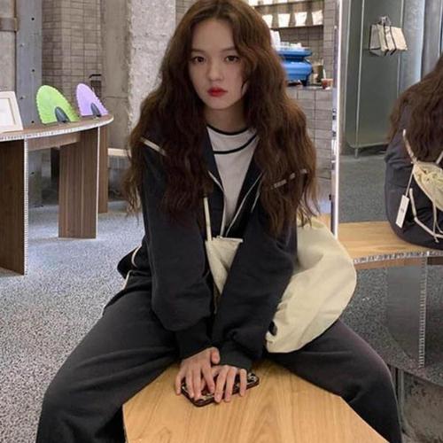 [오너클랜]인기상품 여성 절개 후드 트레이닝세트 한줄 포인트 츄리닝세트 [WDE6A01_250919]