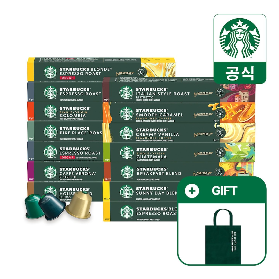 [오늘의딜] 캡슐커피 10캡슐 x 5박스 by 네스프레소 (+SBUX 그린 에코백 증정)