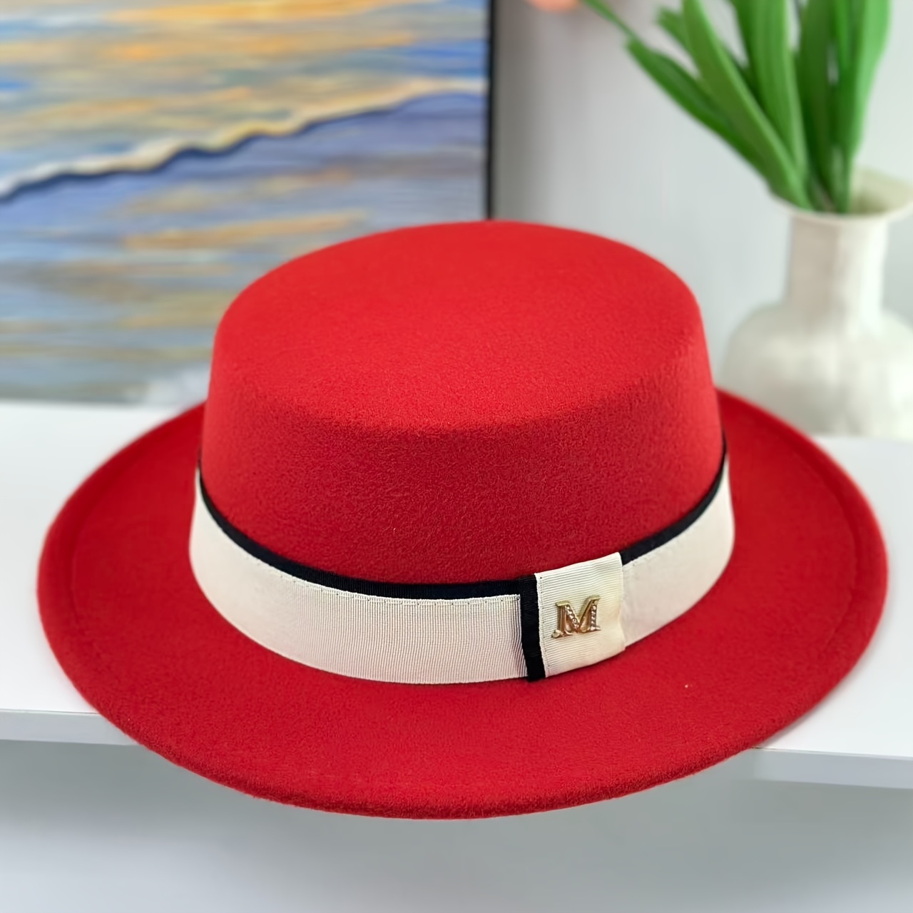 TEMU 프렌치 플랫탑 모자 사이즈 M, 가을/겨울용 빈티지 재즈 모자, 커플용 다용도 영국 스타일 페도라