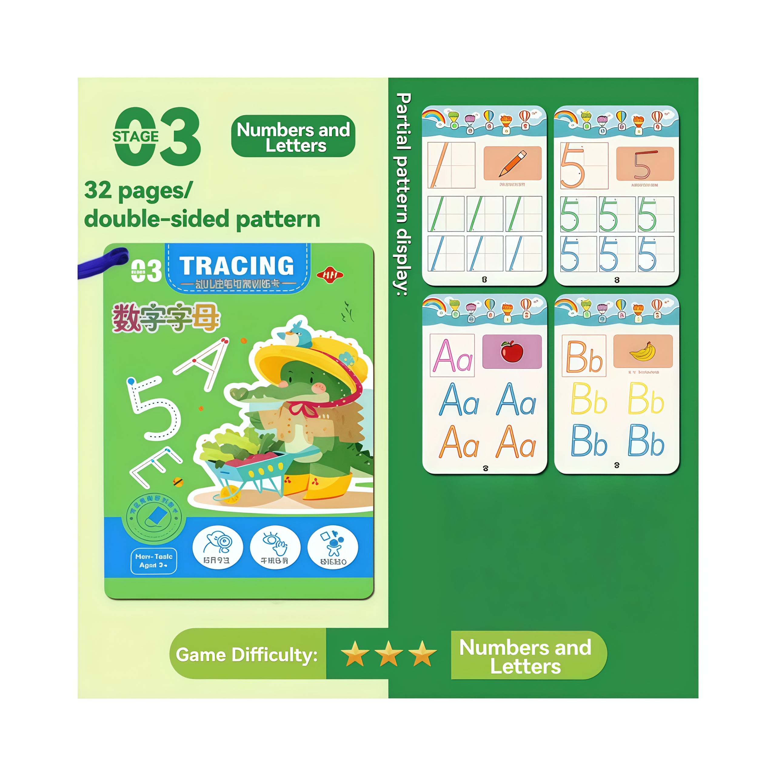 TEMU 32페이지 매직 연습북 | 재사용 가능한 연필 제어 훈련 (어린이용), 선그리기, 숫자 및 알파벳 쓰기, 할로윈 및 크리스마스 선물로 완벽