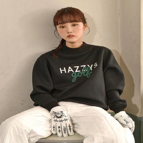 헤지스 골프 여성 [ONLINE EXCLUSIVE]블랙 여성 모크넥 기모 티셔츠(세미오버핏) (HWTS4D991BK)