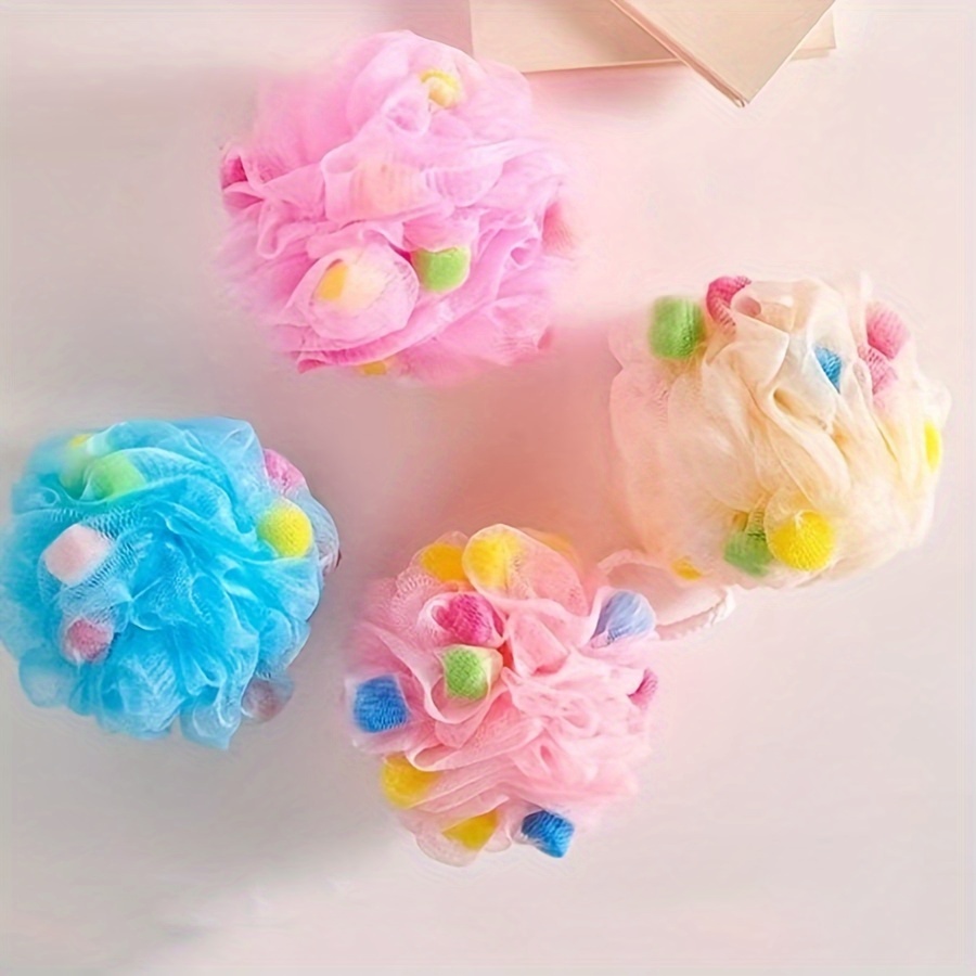 TEMU 4-팩 부드러운 솔잎 욕실 스펀지, 3D 꽃 디자인, 부드러운 각질 제거 샤워 파우프, 미끄럼 방지 손잡이, 30일 교체, 남녀 공용, 가정 욕실 액세서리