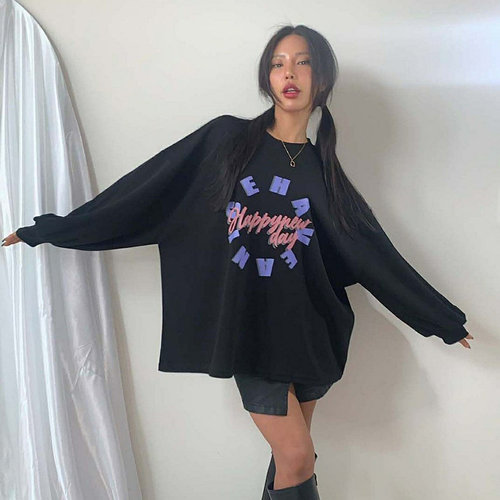빅사이즈 402 해피레터링박스긴팔티 DNMQ558