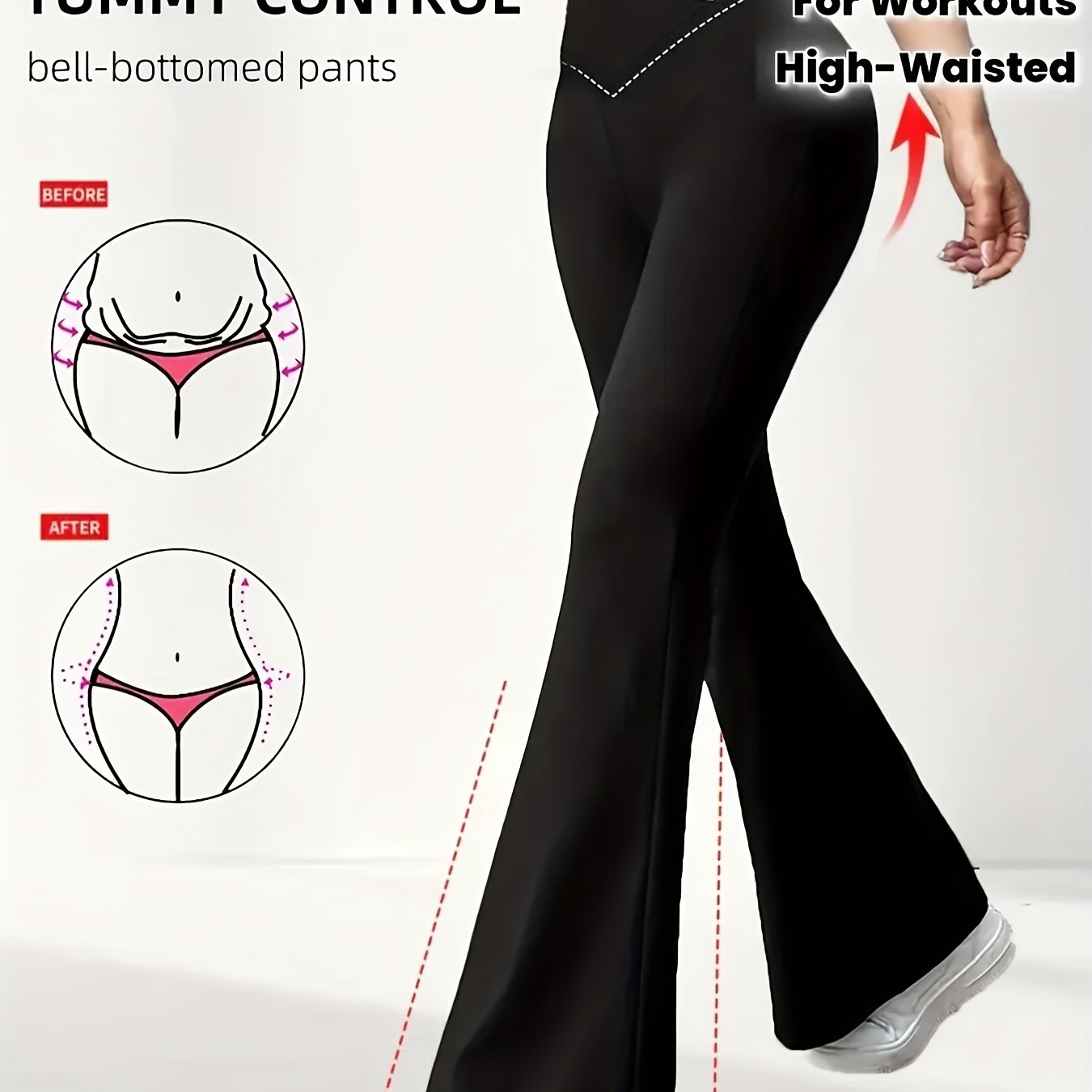 TEMU 여성용 하이웨이스트 복부 컨트롤 벨바텀 카프리 팬츠 - 복부 트리머 벨트 스타일 허리밴드, 와이드 레그 플레어 밑단, 산후용 및 캐주얼 웨어, 사계절용 팬츠 (세탁기 사용 가능)