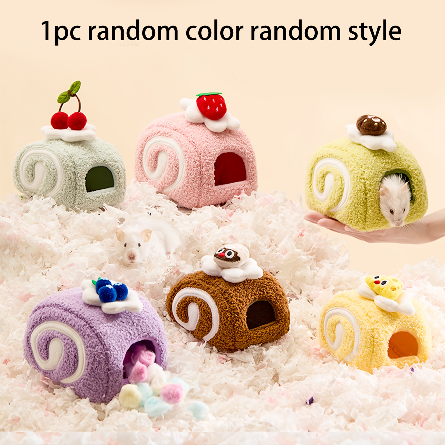 TEMU 1개 햄스터 겨울 침대 하우스 - 입구 터널이 있는 귀여운 파스텔 쉼터, 소프트 웜한 작은 동물 보호소 (햄스터, 저빌, 도마뱀쥐용), 조립 필요 없음, 쉬운 세탁 폴리에스터 둥지, 추위 방지 펫 액세서리, 재미있는 애완동물 장난감, 아늑한 은신처, 저빌 코지 홈, 반려인 선물