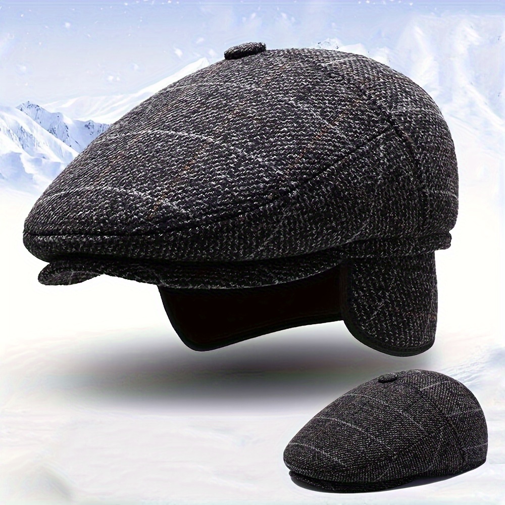 TEMU 남성용 겨울 방한 귀마개 모자 - 넉넉하고 포근한 캡, 성인용, 추운 날씨 야외 활동, 라운드 탑 모자, 손세탁/드라이클리닝 가능, 겨울 및 축제 선물용 아빠 선물