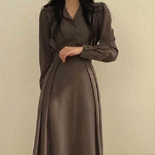 [샵앤][샵앤] 여성 출근룩 A라인 허리밴딩 롱 원피스 WLD-WDR-SIS585