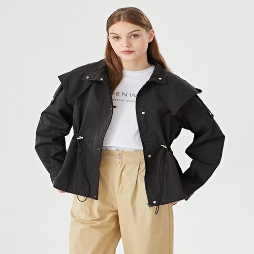 솔리드 레이플 레이스업 트렌치코트 여성 패션 긴 소매 허리 조임 숏 윈드브레이커 2025 신상 가을 오피스 출퇴근 아우터