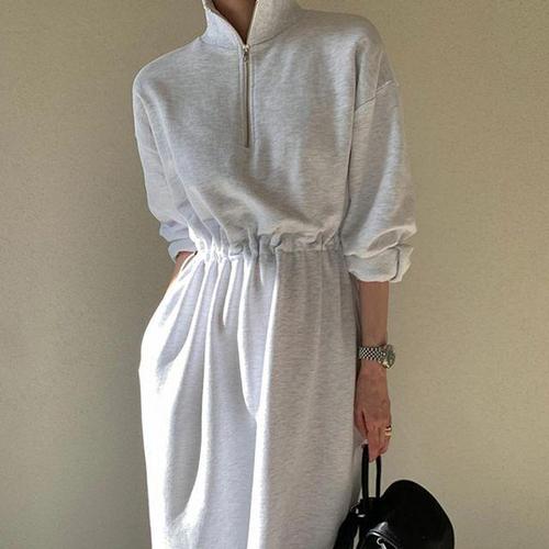 [모노무드]LMO 캐주얼데일리 하프업 허리밴딩 폴로카라 드레스