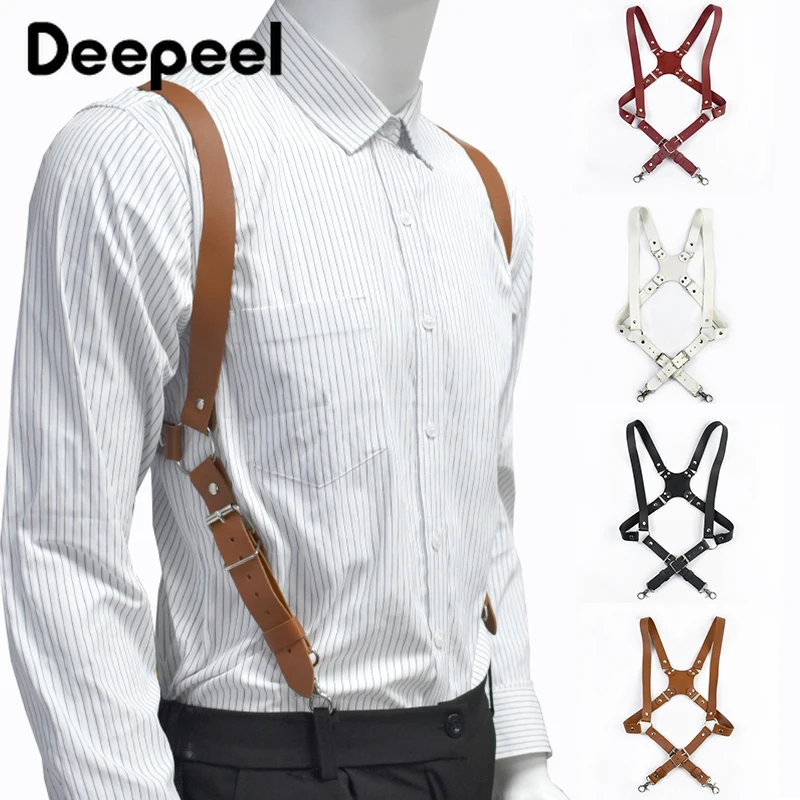 디피엘 2.5cm 남성용 가죽 서스펜더 2 클립 훅 남성용 탄성 브레이스 성인 조절 스트랩 하네스 서스펜더 바지 액세서리