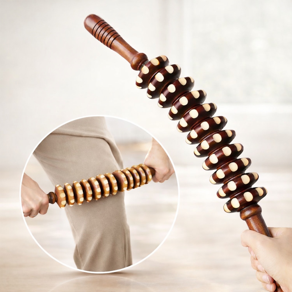 원목 곡선 롤러 안마기 ( 휴대용 지압봉 바디 스트레칭 뱃살 허벅지 팔뚝살 마사지기 )