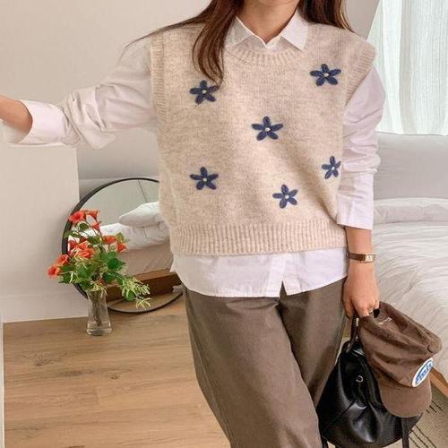[셀러허브_여성트랜드패션]ONM 여성 3컬러 꽃무늬 짜임 러블리 니트조끼 니트