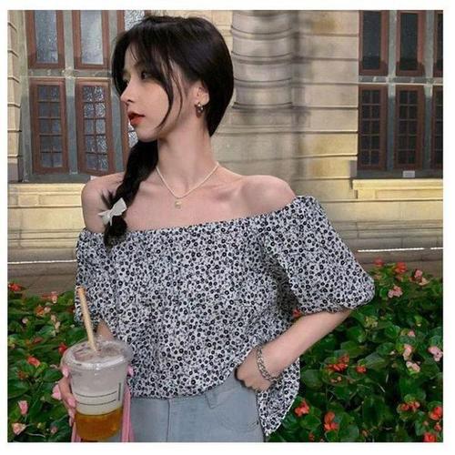 [셀러허브_여성트랜드패션]ONM 작은 꽃무늬 오픈 숄더 블라우스