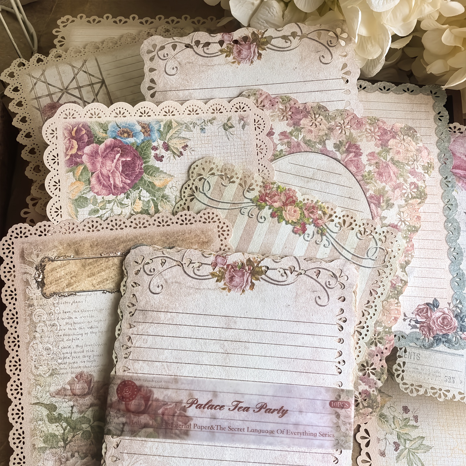 TEMU 레트로 식물 꽃 글자 종이 1팩 10장, 레트로 속이 빈 프레임 장식 배경 재질 종이