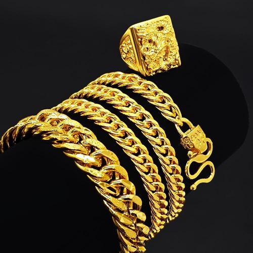 TEMU 1개 목걸이 + 1개 팔찌 8mm 와이드 구리 주얼리 2pcs/세트 심플 힙합 메탈 브레이디드 체인 패셔너블 중성 스타일 데일리 착용 선물. 케이팝 스타일 주얼리